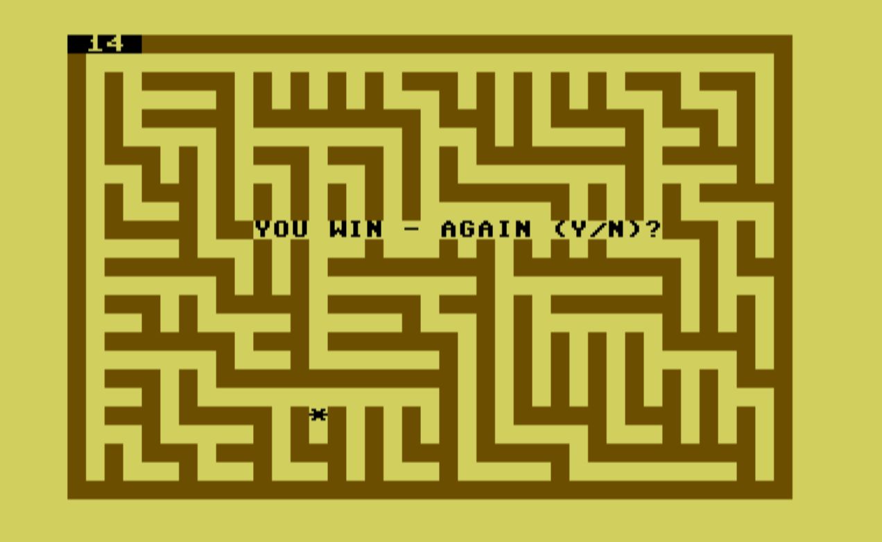 8 IFg=kANDi=ltHchA,10,10,"you win - again (y/n)?":gEkEa$:ifa$="y"tH0:end