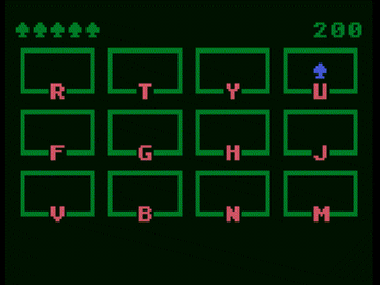 1DIM H(11,1):FOR I=0TO11:READ C:H(I,0)=C:READ C:H(I,1)=C:NEXT I:O=57344:QP=(PEEK(106)-8):Q=QP*256:POKE764,255 2FOR I=0TO999:POKE Q+I,PEEK(O+I):NEXT I:FOR I=0TO6:READ S:FOR L=0TO7:POKE Q+8*(8+I)+L,PEEK(Q+S*8+L):NEXT L:NEXT I 3GR.18:SE.0,12,6:POS.6,4:?#6;"BONK'EM":POS.3,9:?#6;"noah burney'24":FOR W=0TO999:ONPEEK(764)=12 GOTO4:NEXTW:GOTO3 4POKE756,QP:L=5:B=0:V=300:POS.0,0:?#6;".....":POS.19,0:?#6;0:FORR=0TO2:POS.0,1+3*R:SE.1,8,6:SE.2,4,9:SE.4,12,0 5?#6;"(---)(---)(---)(---)";:?#6;", ,, ,, ,, ,";:FOR C=0TO3:?#6;"*-";CHR$(H(R*4+C,0));"-+";:NEXT C:NEXT R 6M=INT(12*RND(1)):R=INT(M/4):C=M-R*4:X=2+5*C:Y=2+3*R:POS.X,Y:?#6;CHR$(14):POKE 764,255:T=V:V=V-5:IFV<50THENV=50 7POS.X,Y:HIT=(PEEK(764)=H(M,1)):ON HIT GOTO 9:T=T-1:ON T=0 GOTO 8:GOTO 7 8COL.3:?#6;"."; :L=L-1:D=(L=0):POS.L,0:?#6;" ";:ON D GOTO 3:FOR W=0TO200:NEXT W:POS.X,Y:?#6;" ";:GOTO 6 9?#6;CHR$(127);:B=B+1:PL=1+(B>9)+(B>99)+(B>999):POS.19-PL,0:?#6;B;:FOR W=0TO99:NEXT W:POS.X,Y:?#6;" ";:GOTO 6 10D.210,40,212,45,217,43,213,11,198,56,199,61,200,57,202,1,214,16,194,21,206,35,205,37,81,69,90,67,124,82,123