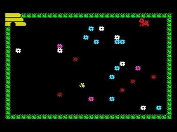 In Busy Bee, the object of the game is to collect flowers while avoiding spikes and to get home safely before the bear gets to your beehive.