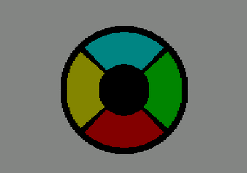 Graphics Or Mode CHR$(23)+CHR$(3) is used to draw color keys behind black circles and background color.