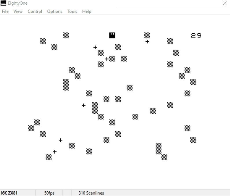 P.S.: about the speed (I noticed you complained about it in the description), there is few tricks to make it noticeably faster. [To optimize speed on any ZX81 Sinclair Basic program is probably the thing I like the most... it might be the reason I like this machine so much.] If you want, we can exchange on the topic... after the contest I guess. ^^