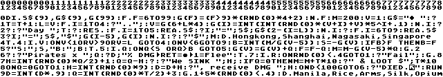 0DI.S$(9),G$(9),G(99):F.F=6TO99:G(F)=(F>9)*(RND(0)*4+2):N.F:M=200:V=1:G$="*. ":?