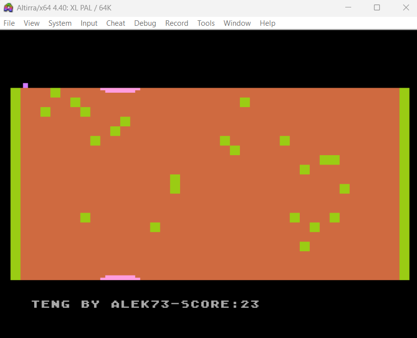 The game TENG is inspired to PONG, written in ATARI BASIC (10 lines, less than 120 characters each) for ATARI 8bit computers and tested on a PAL 800XL emulated in Altirra.