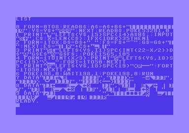 | Tags | 10liner, 8-Bit, basic, Commodore 64 |